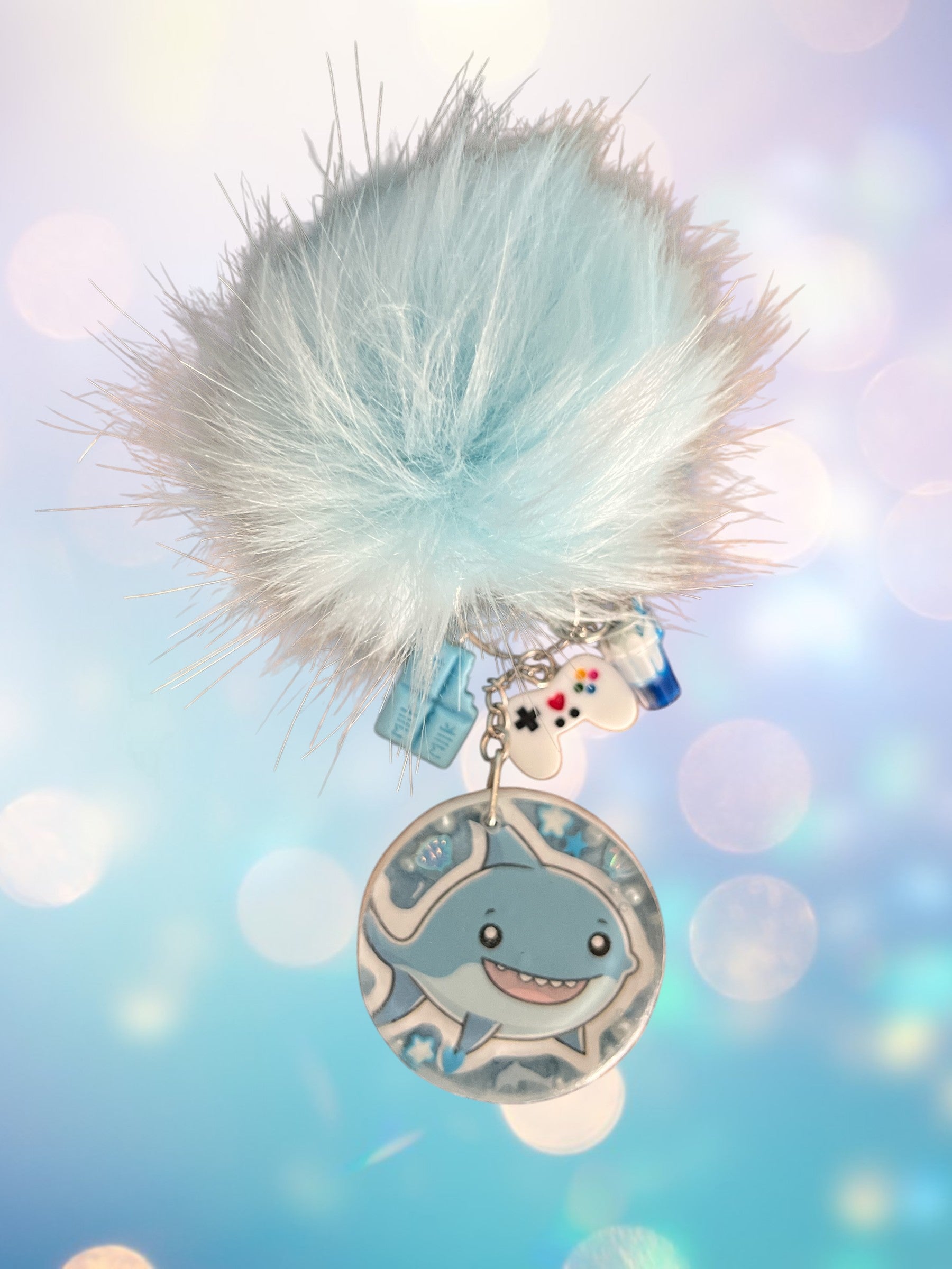 This meticulously hand-poured resin bag charm captures a delightful cartoon shark with expert artistry and attention to detail. Accompanied by whimsical accent charms and a coordinating light blue pom pom, it creates a complete, thoughtfully curated accessory. Ideal for personalizing bags, backpacks, or keychains, this handmade piece combines playful charm with refined craftsmanship, delivering the authenticity and distinctive quality that sets artisan resin work apart from conventional alternatives.