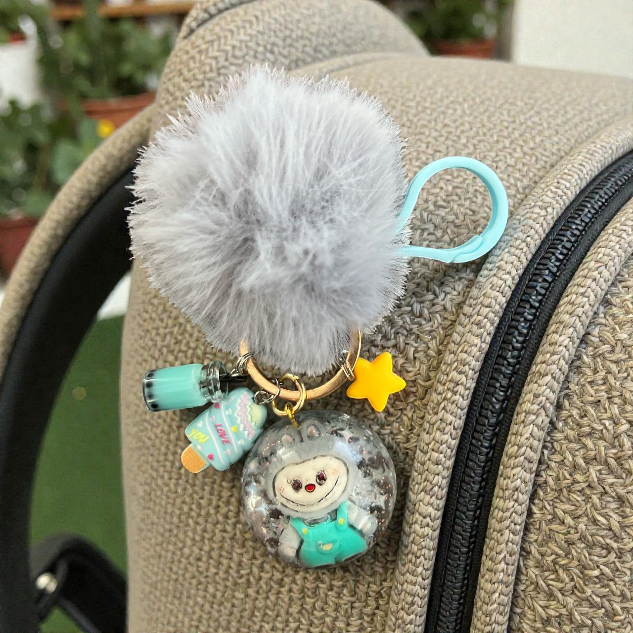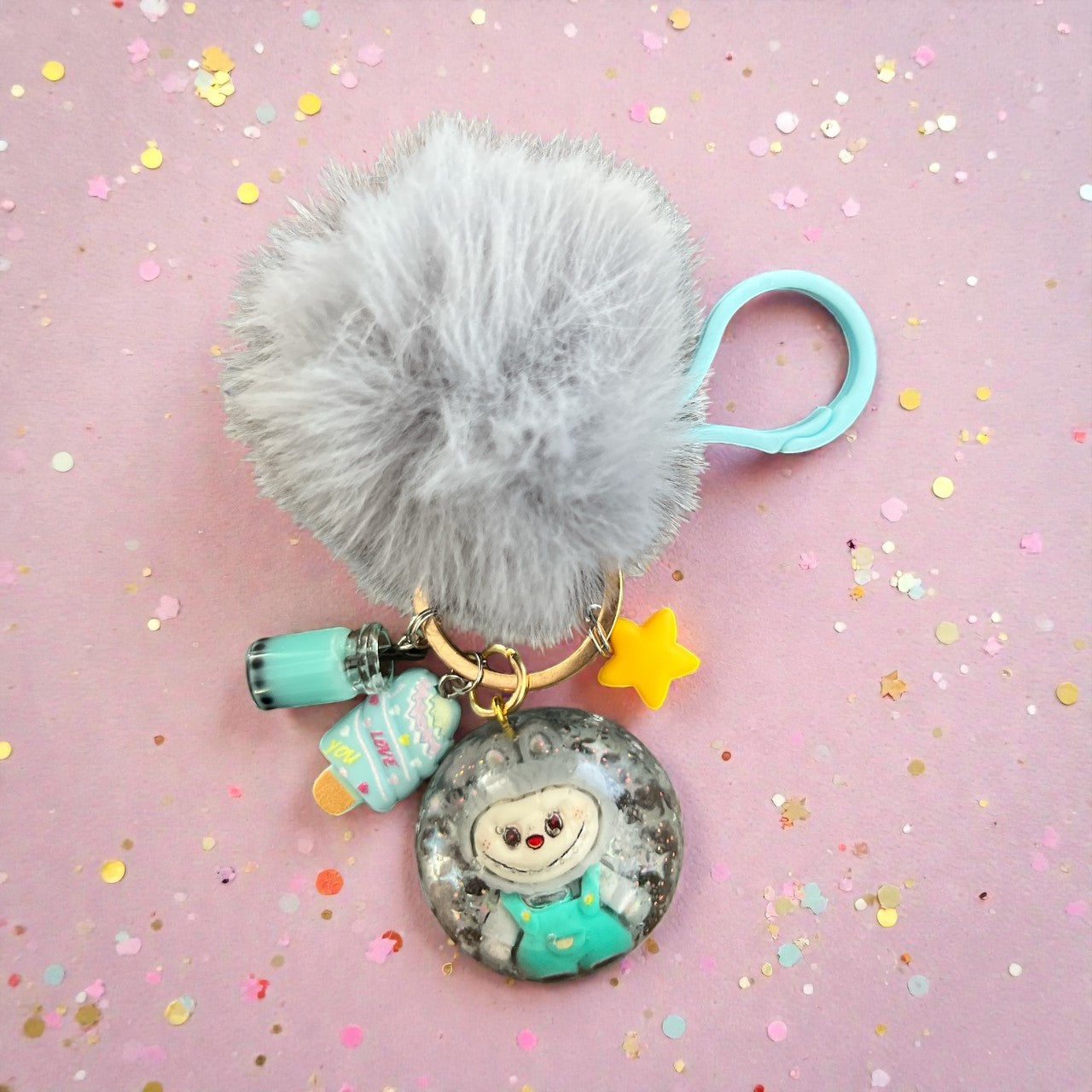Unleash your inner child with our Inspired by Labubu bag charms. Each one is handmade with colorful resin, whimsical charms, and a matching pom pom. Get ready to add playful personality to your bag!