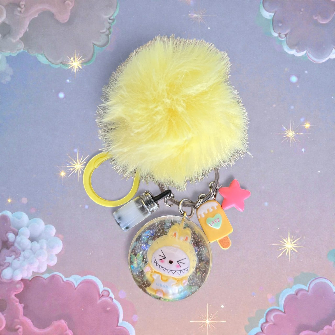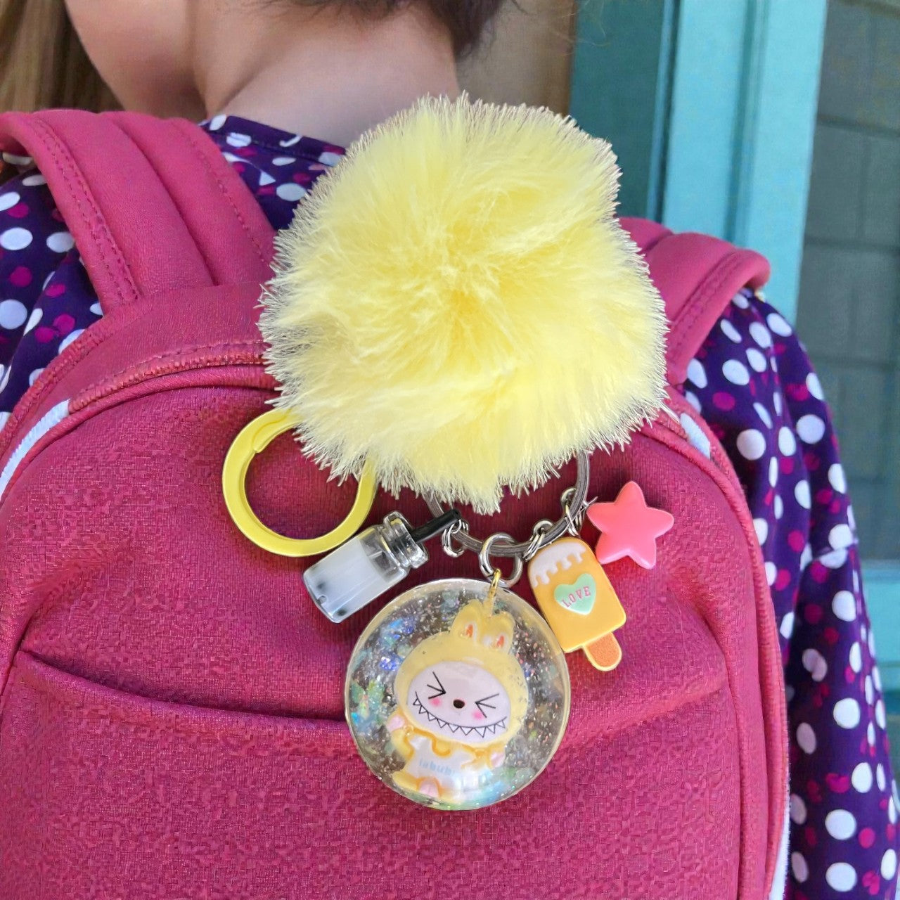 Unleash your inner child with our Inspired by Labubu bag charms. Each one is handmade with colorful resin, whimsical charms, and a matching pom pom. Get ready to add playful personality to your bag!