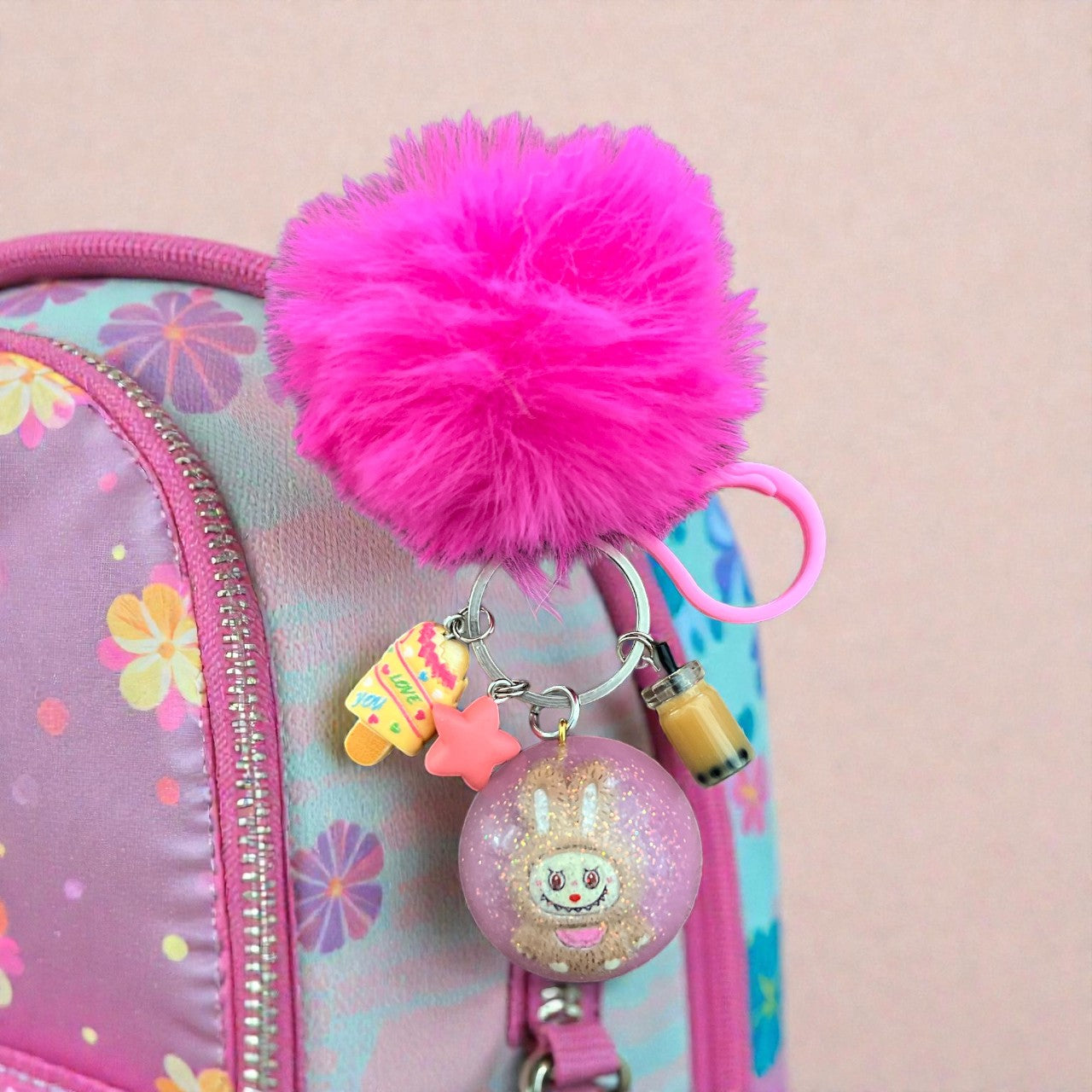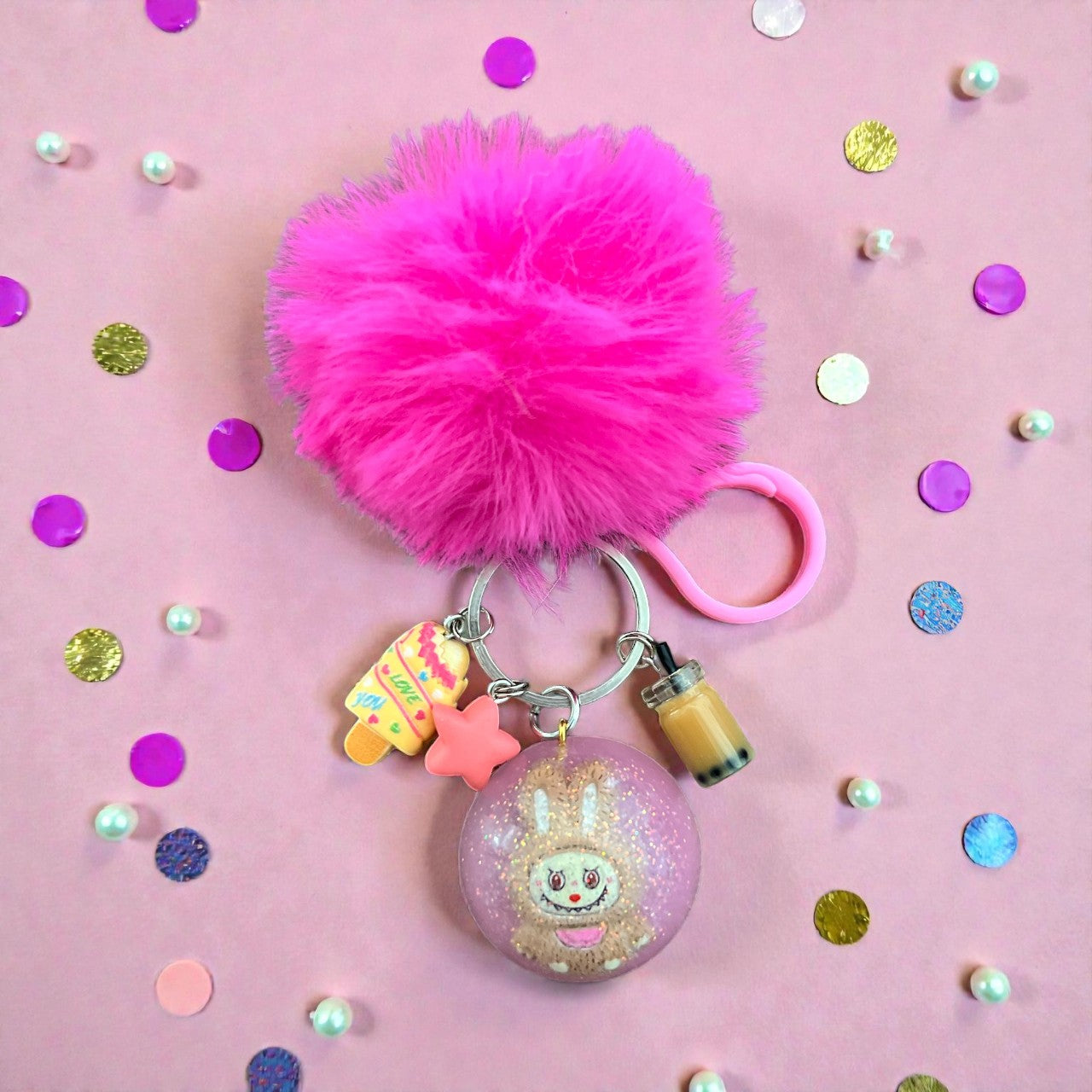 Unleash your inner child with our Inspired by Labubu bag charms. Each one is handmade with colorful resin, whimsical charms, and a matching pom pom. Get ready to add playful personality to your bag!